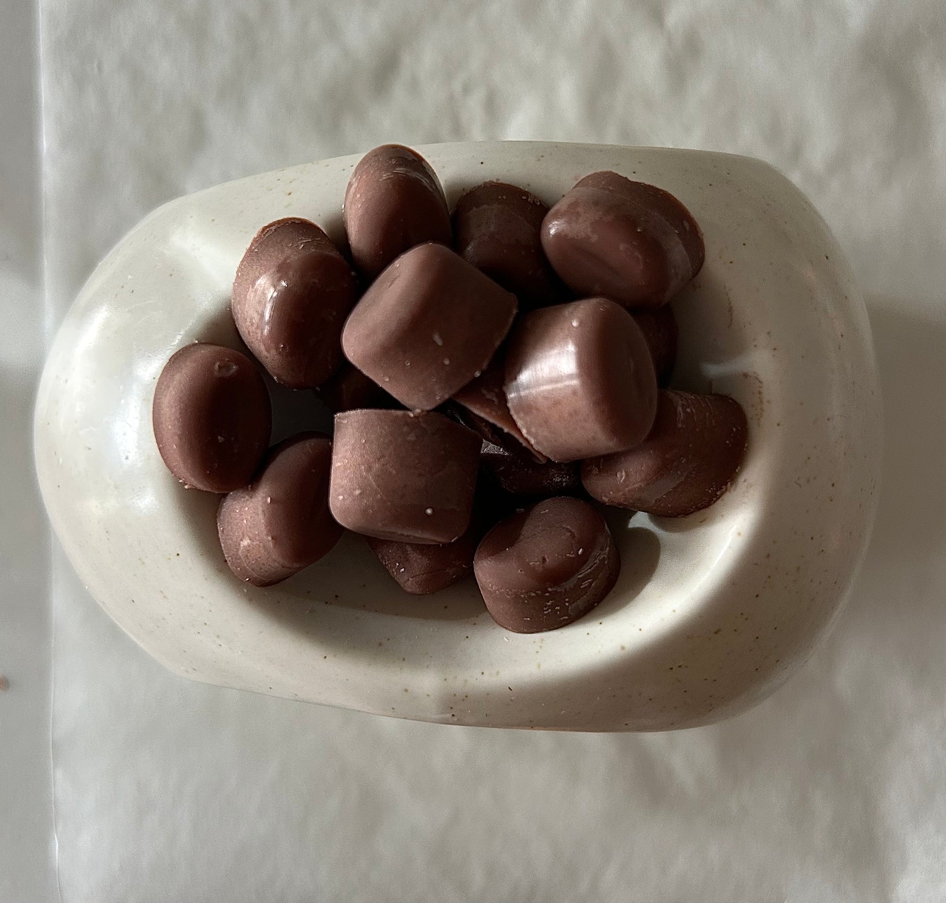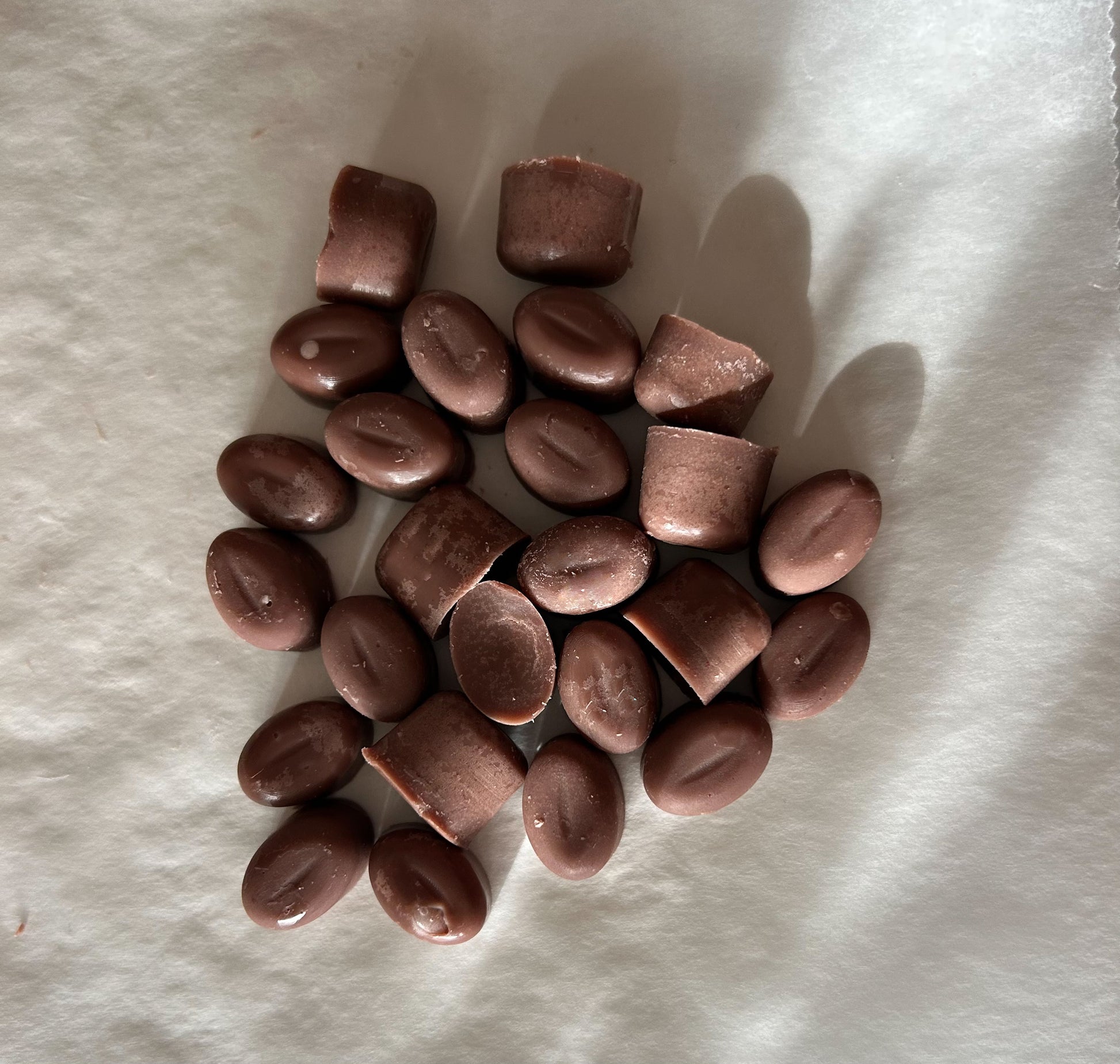 Wax melt de cera de soja en forma de grano de café.