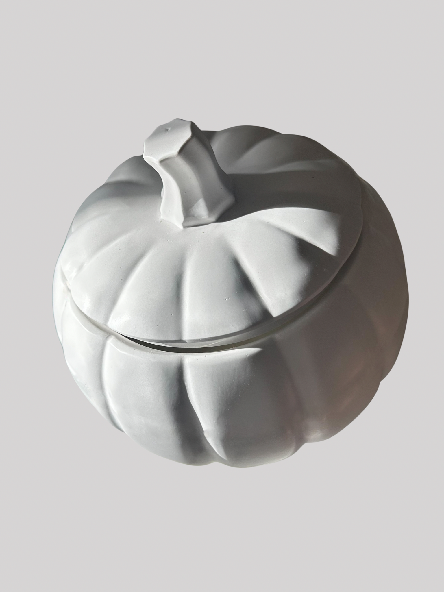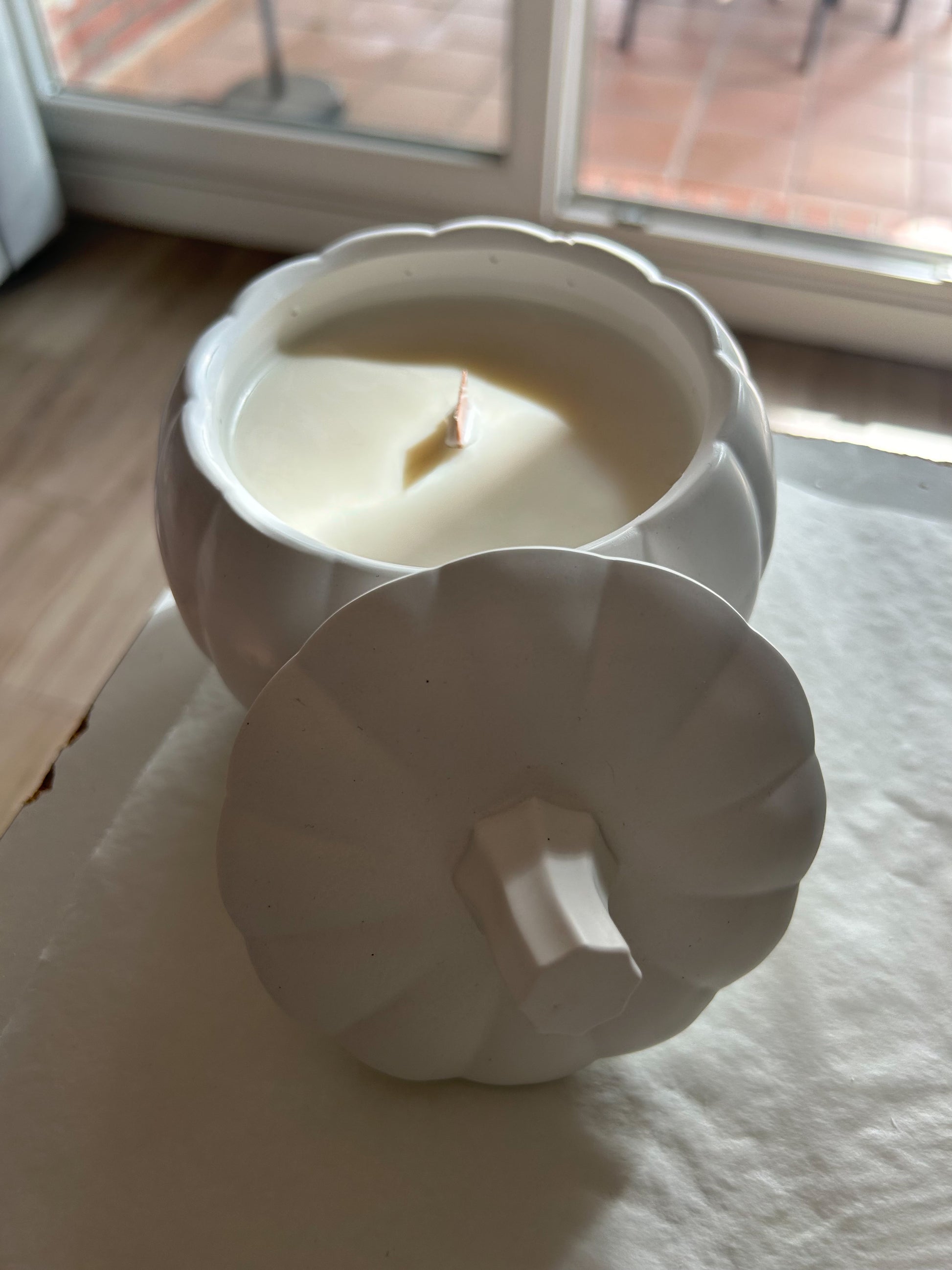 Vela de cera de soja con resina acrílica en forma de calabaza cucurbita.