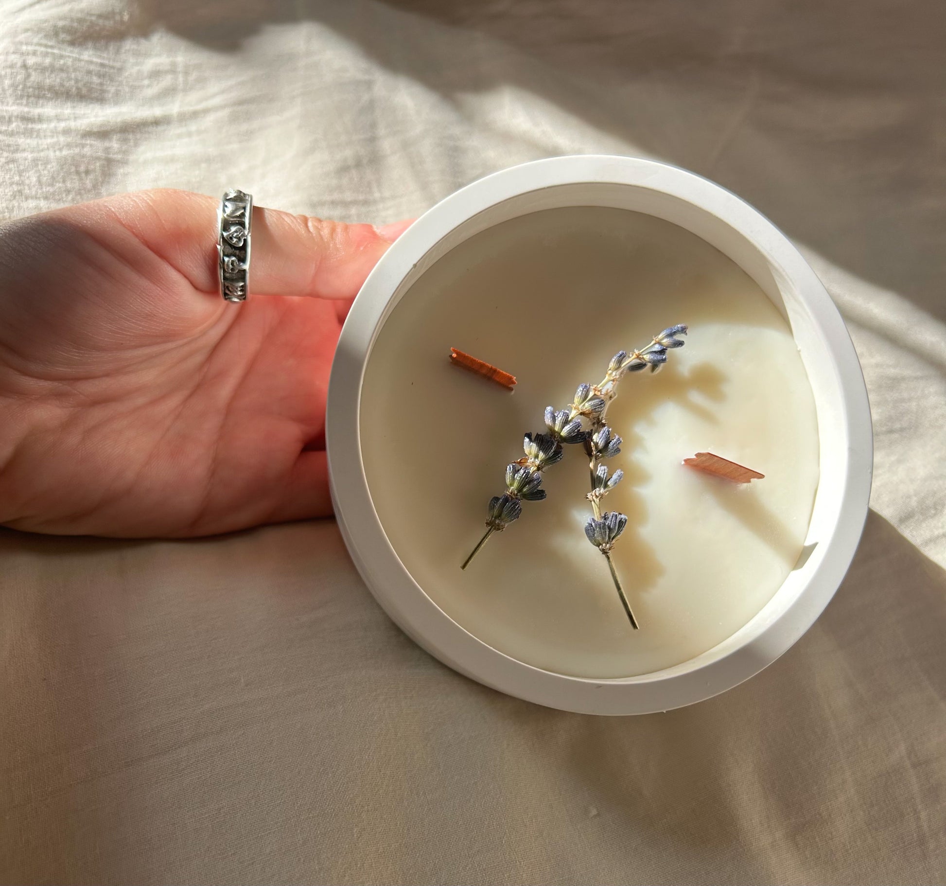 Las velas están creadas artesanalmente, esto quiere decir que ninguna vela es igual a otra. Durante el proceso de creación importan muchos factores, como la temperatura de la cera, el tipo de cera, el enfriamiento y el acabado final.