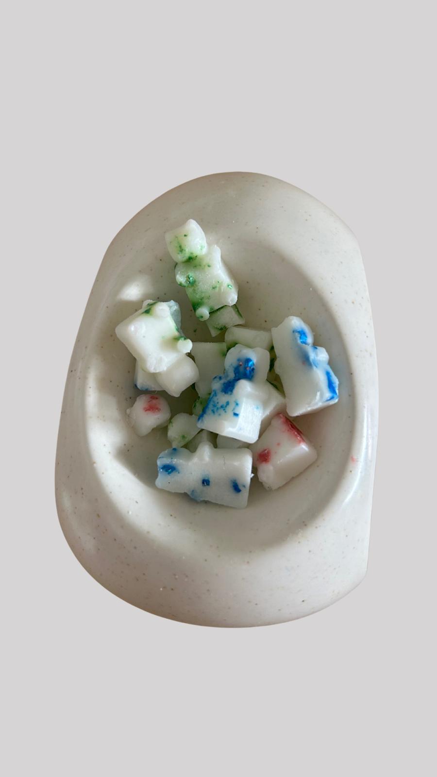 Los wax melts están creados artesanalmente, esto quiere decir que ninguno es igual a otro. Durante el proceso de creación importan muchos factores, como la temperatura de la cera, el tipo de cera, el enfriamiento y el acabado final.